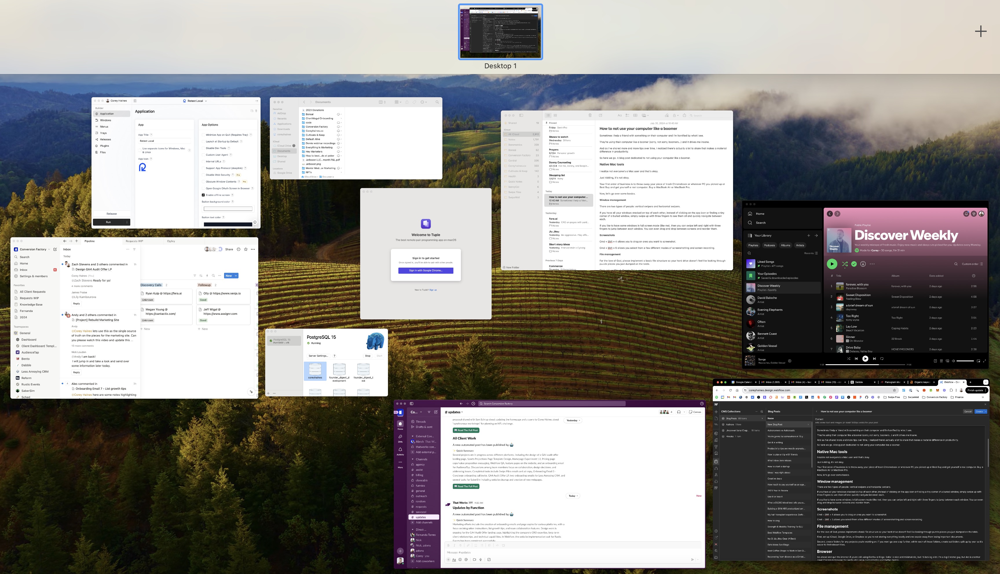If you have all your windows stacked on top of each other, instead of clicking on the app icon or finding a tiny corner of a buried window, simply swipe up with three fingers to see them all and quickly navigate between each.